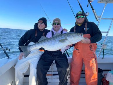 During December and January we will offer trophy Striped Bass trips. These fish migrate up the eastern shore during these months and is a great opportunity to catch a trophy. These trips will be catch and release. The trip will be for 5 anglers. Dates will be posted close to December depending on when the fish show up. Call or text Captain Tripp if you are interested in a trip. 757-650-3718